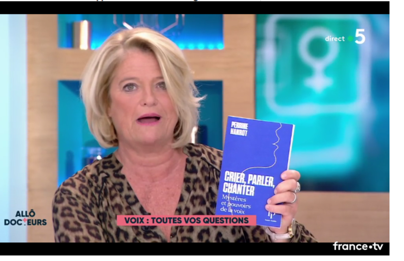 Le 4 avril, Perrine Hanrot était l'invitée de Marina Carrère d'Encausse et de Régis Boxelé dans l'émission Allô Docteur, sur France 5, à l'occasion de la parution de son livre Crier, parler, chanter.